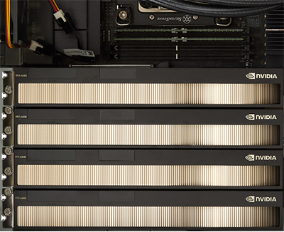 コンパクトな設計とブロワー式冷却により、小型ワークステーションや、複数のGPUを搭載するマルチGPU構成の導入が容易になります。特に、複数のセンサーデータ処理を同時に行うような、GPUメモリ総容量を重視するタスクに有効です。