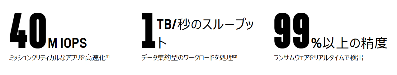 高度なデータ管理で複雑さを解消する一方、AI、VMware、データベース、メディア / エンターテイメントなどの最も要件の厳しいあらゆるワークロードに対応し、パフォーマンスとスループットの大幅な向上、効率化、保守に伴う停止やダウンタイムの最小化を実現します。